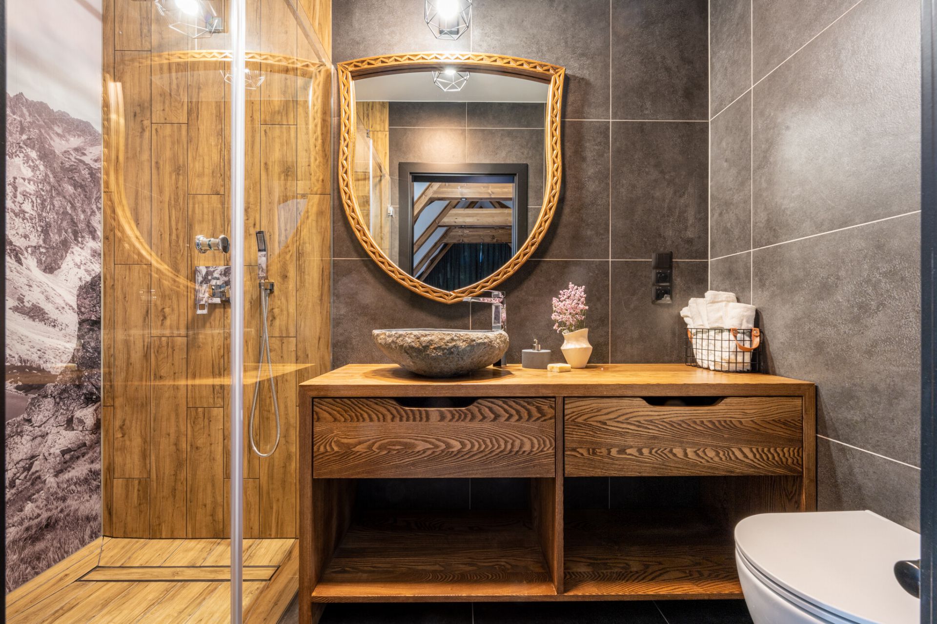 This apartment is located on Polana pod Nosalem, within the Tatra National Park buffer zone. It offers stunning views of the Nosal ski slopes and the surrounding mountains. The property is conveniently situated near mountain trails, the Kasprowy Wierch cable car, the Wielka Krokiew ski jump, and the center of Zakopane.