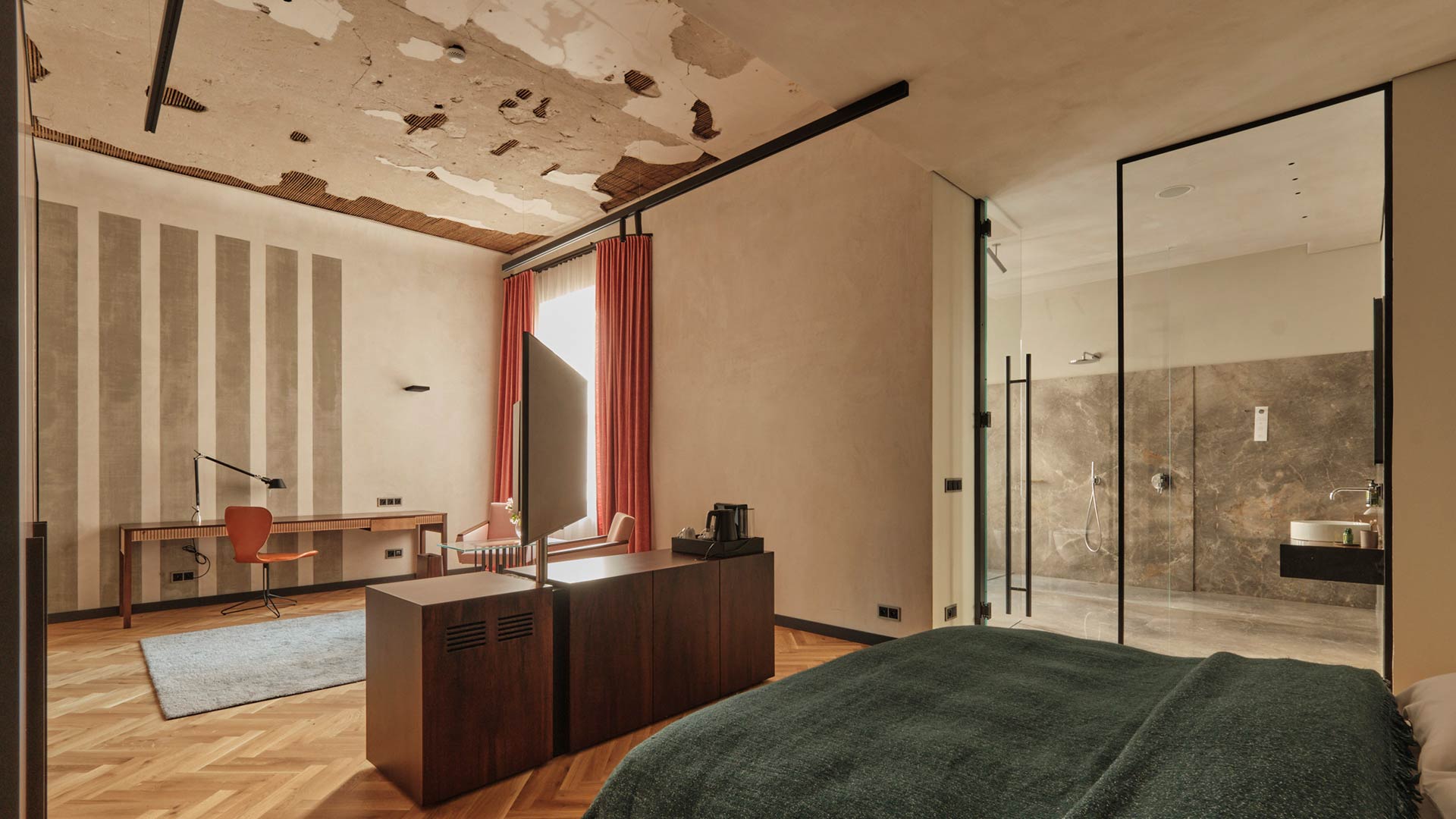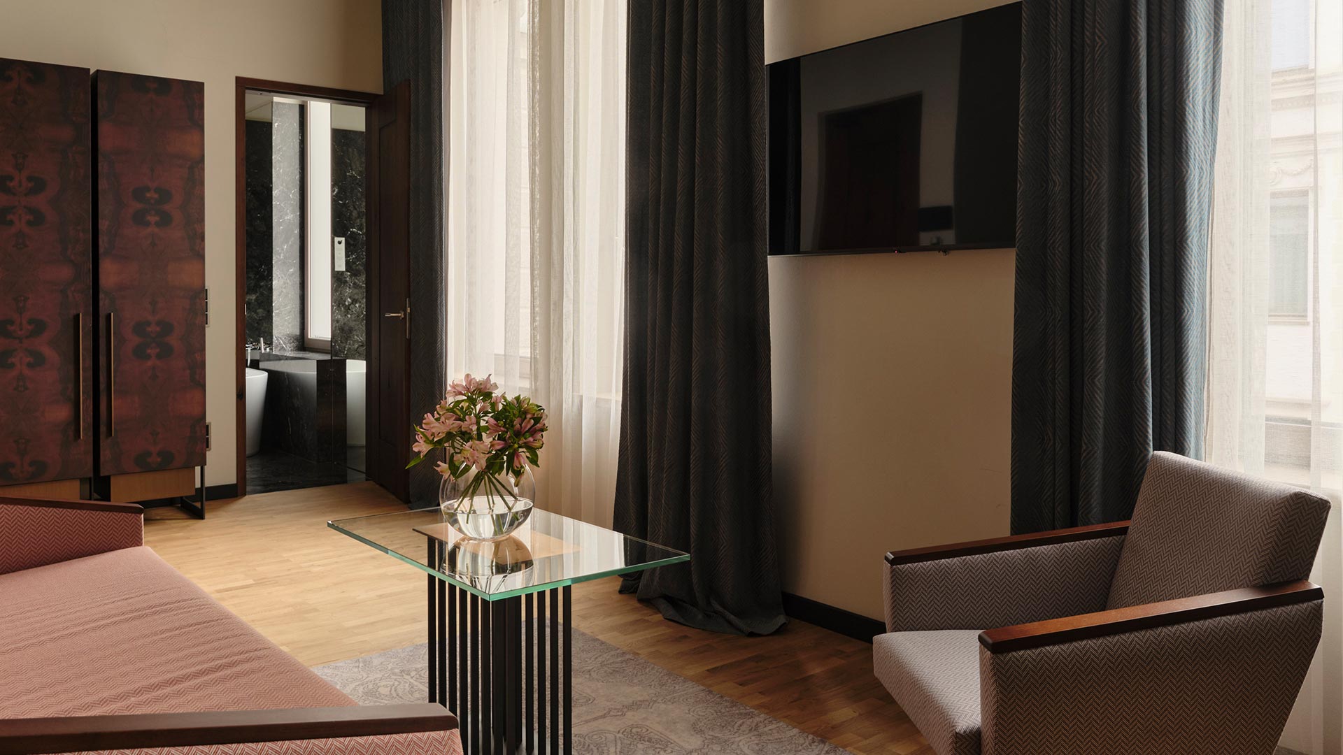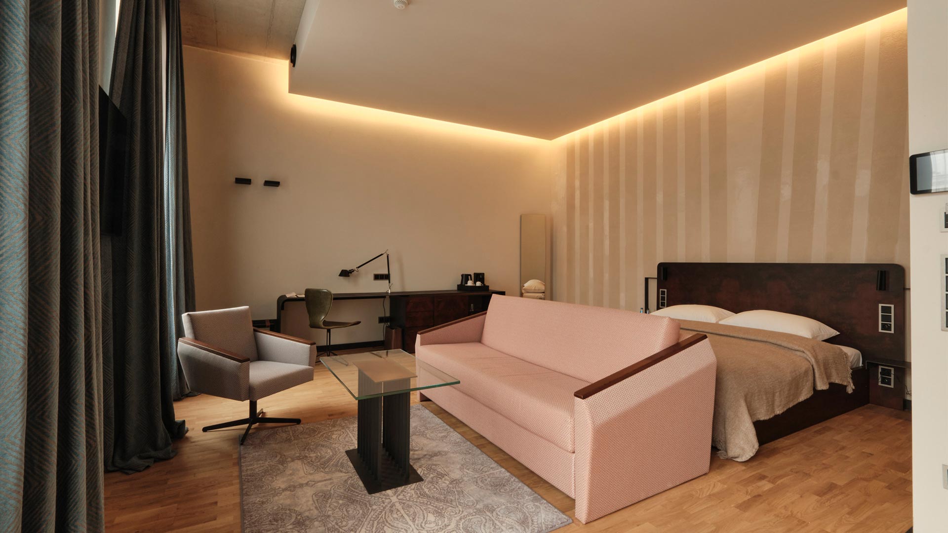 Spacious double rooms of a higher standard are located on all levels of the 5-story hotel. Some of them are inpart of the building with windows overlooking the courtyard. Others placedare along Piotrkowska and Traugutta Streets. Some rooms locatedon the 3rd and 4th floor, have a balcony. The rooms have one type bedKing Bed and a work desk and seating area. Marble bathrooms are equipped with both a bathtub and a shower. We put at your disposal cosmetic accessories, bathrobes, flip flops, scales, shoe kit and a hair dryer.Luxurious L’occitane cosmetics complete the whole comfort and style.In some rooms in the Deluxe standard we have prepared amenities for people with disabilities.