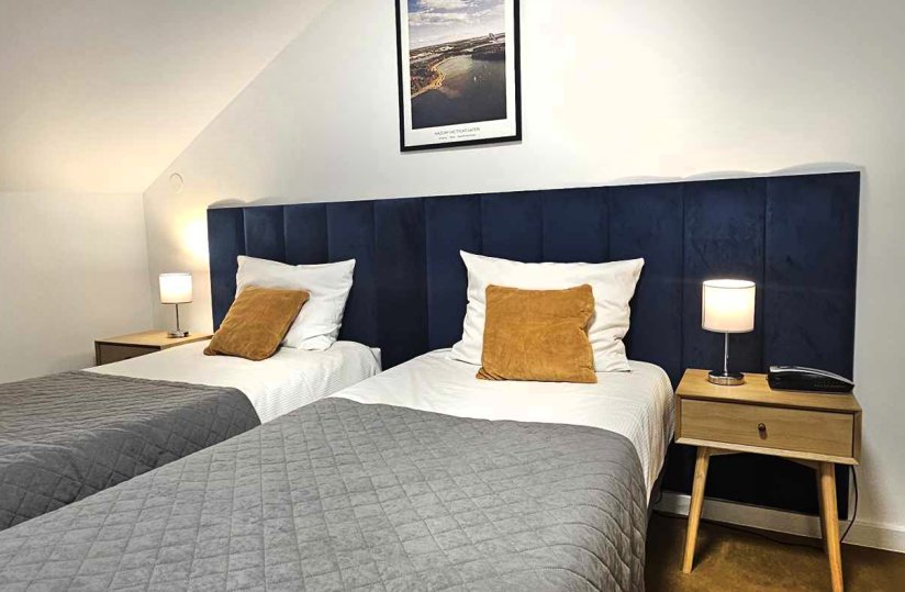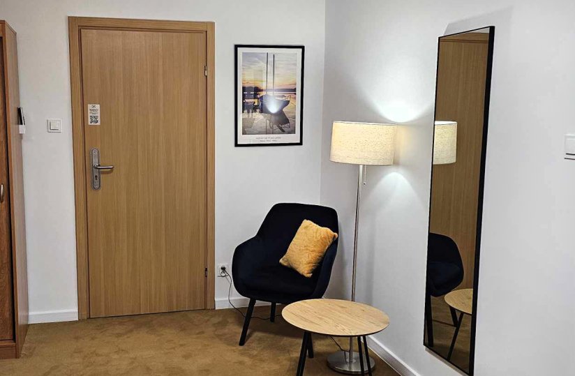 We give our Guests six elegant rooms which are suitable in the main part of the hotel. It is possible to use single or double rooms what is a comfort. Each room contains: