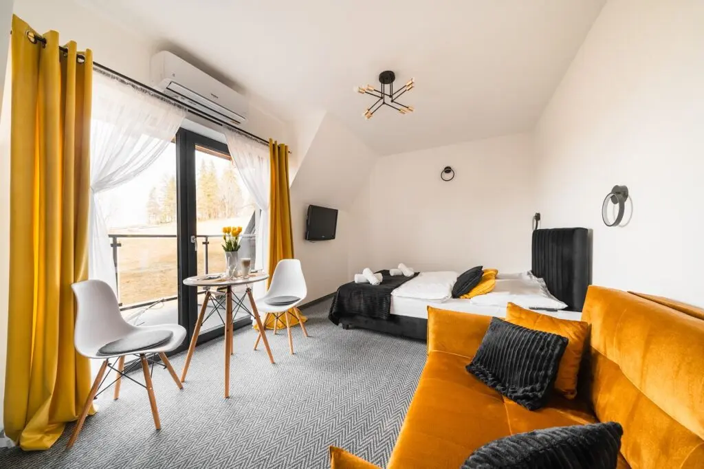 Choose a cozy double room in Bukowina Tatrzańska and unwind in a warm, modern setting designed to provide the perfect atmosphere for relaxation.