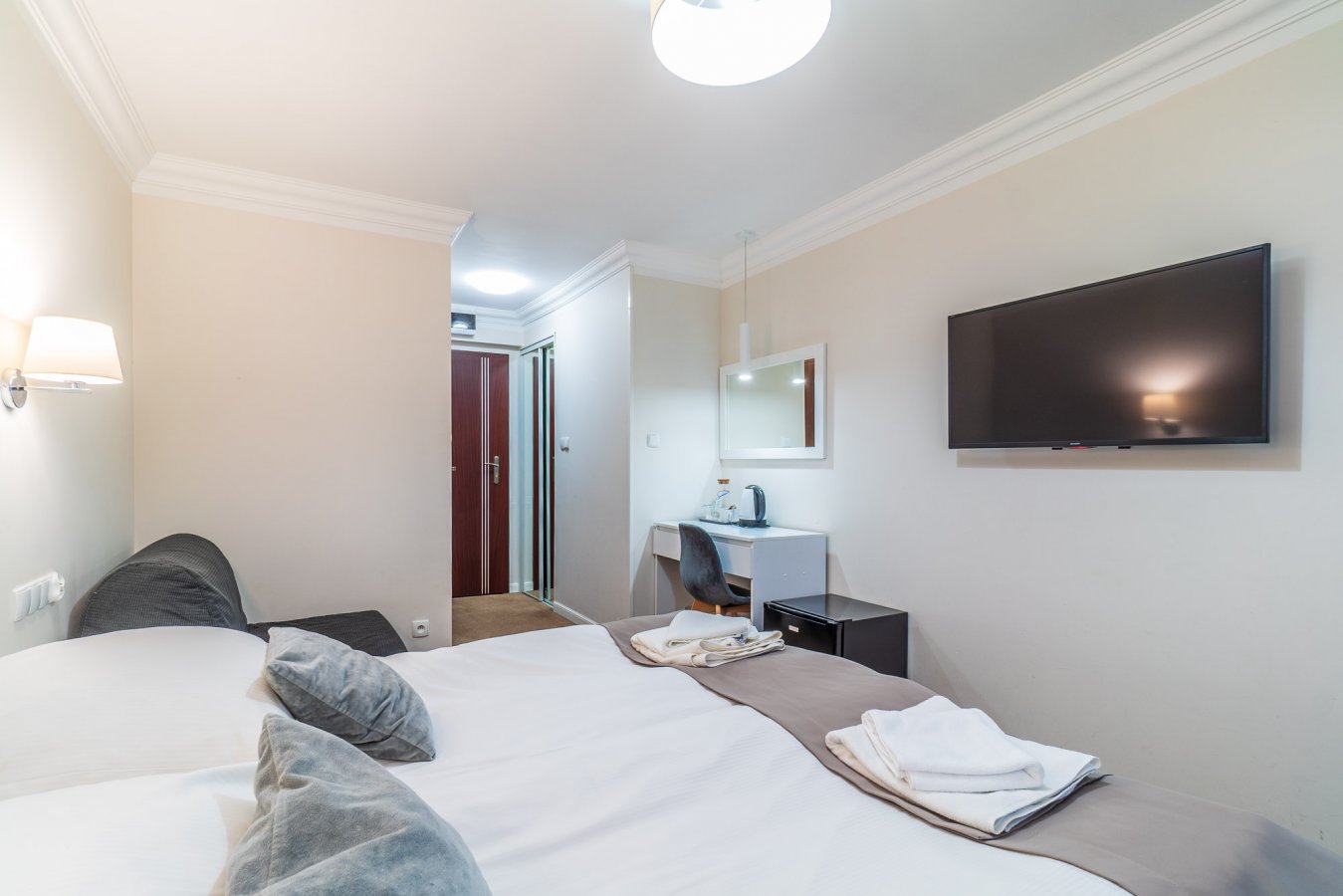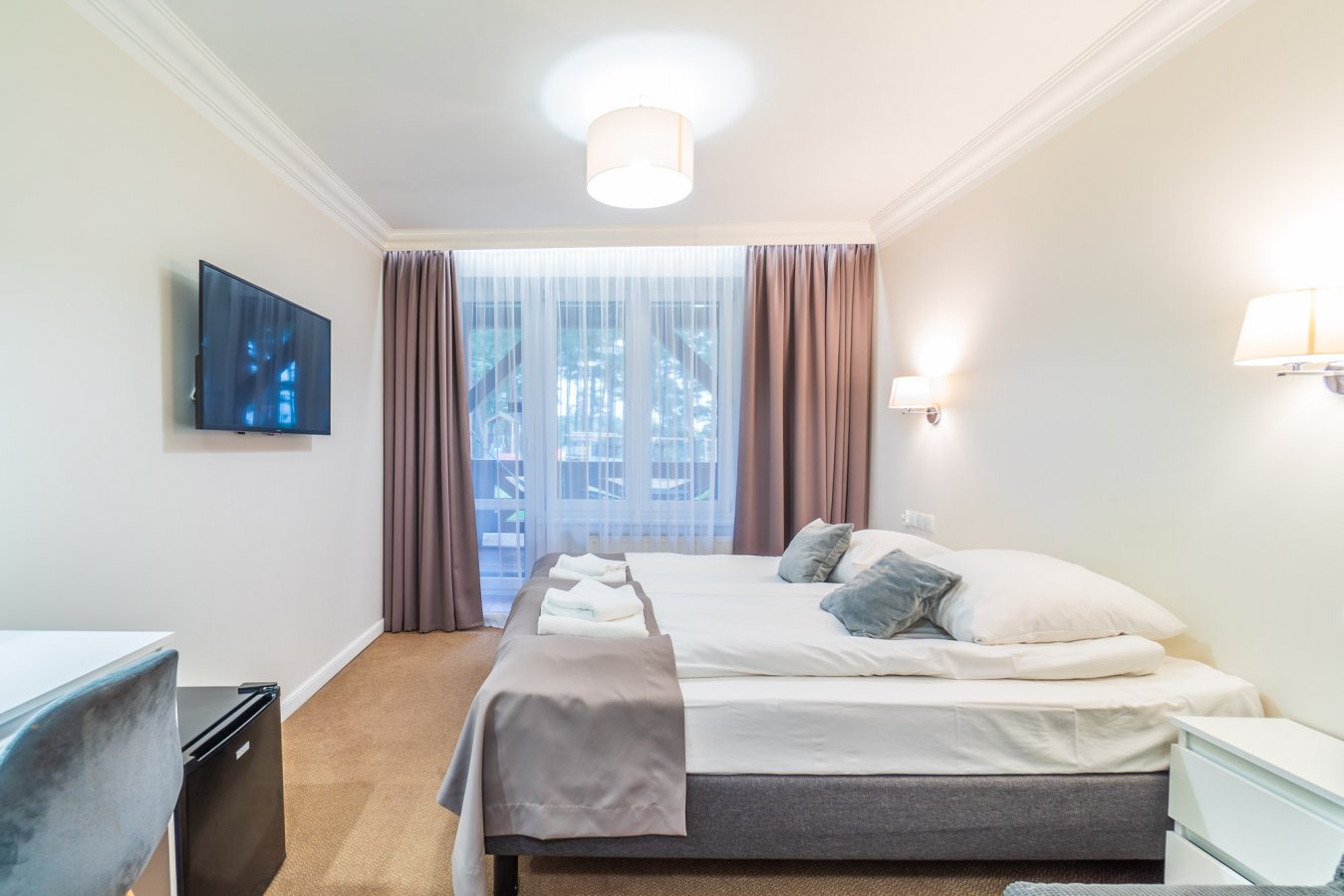 Functional rooms with a slightly larger area than Standard rooms, designed in either a classic or modern style. Each room features a balcony offering a magical view of the lake and forest. The rooms are equipped with two comfortable single beds that can be combined into one. Upon request, an additional bed can be provided for children aged 4-12.