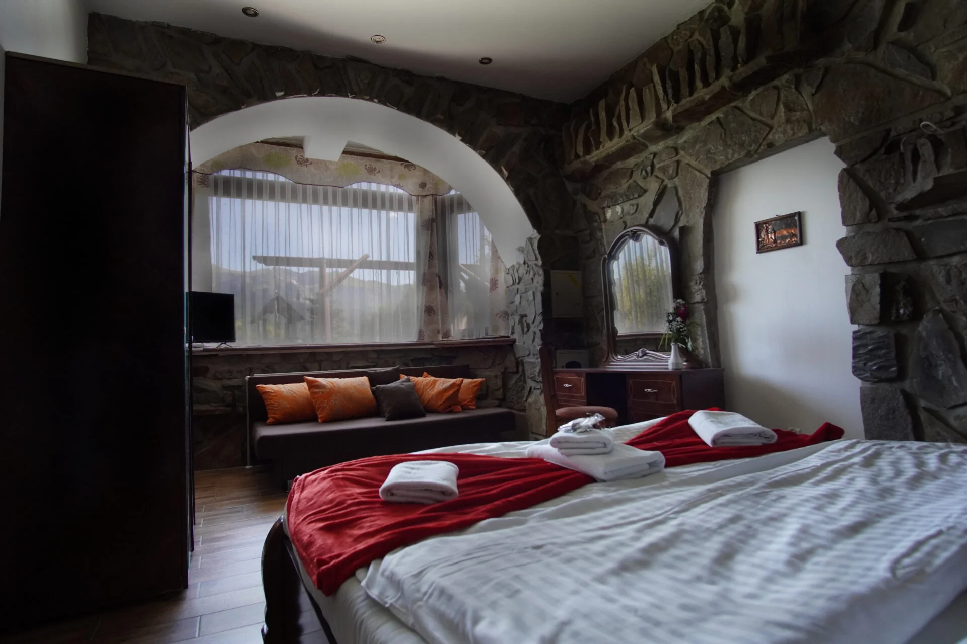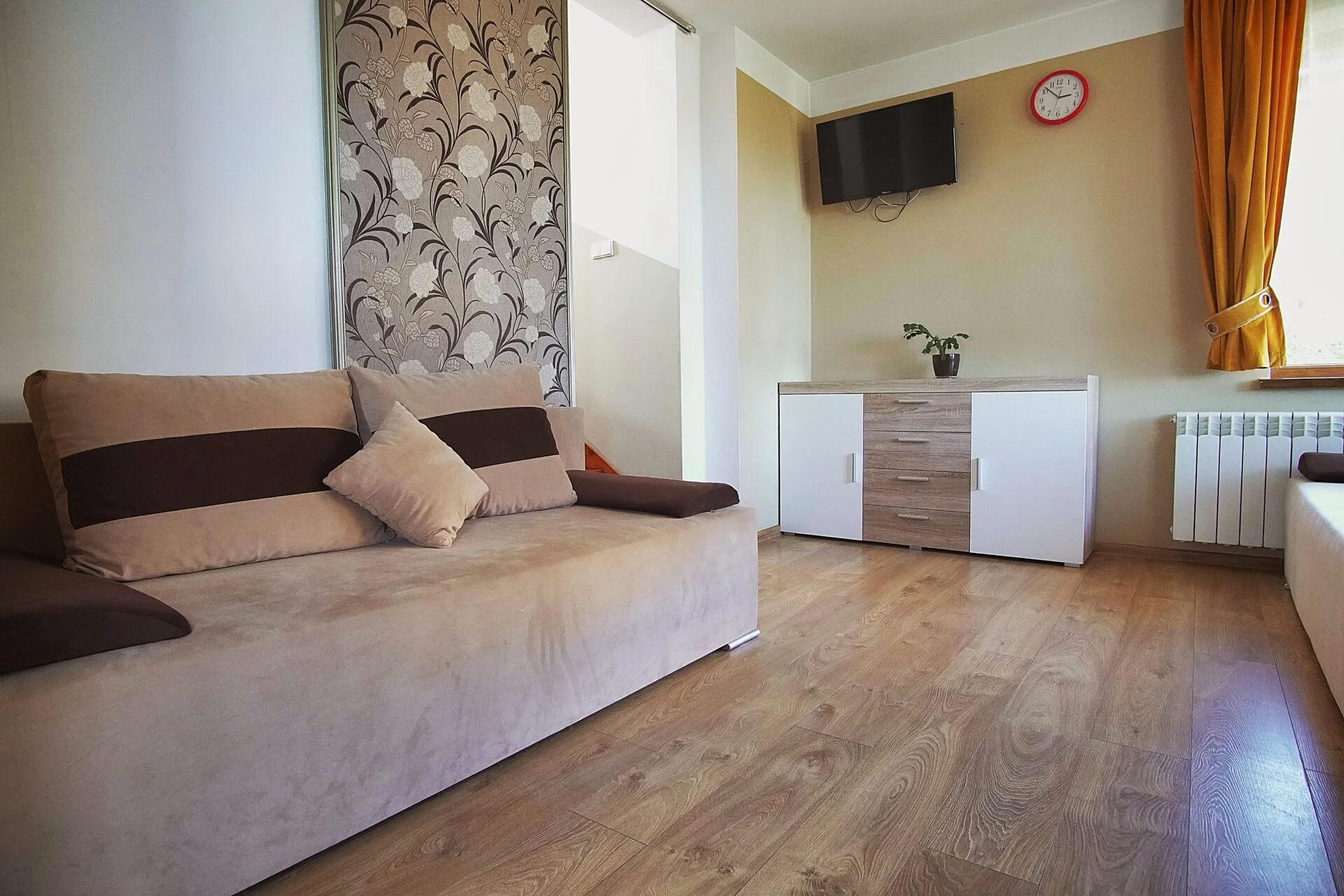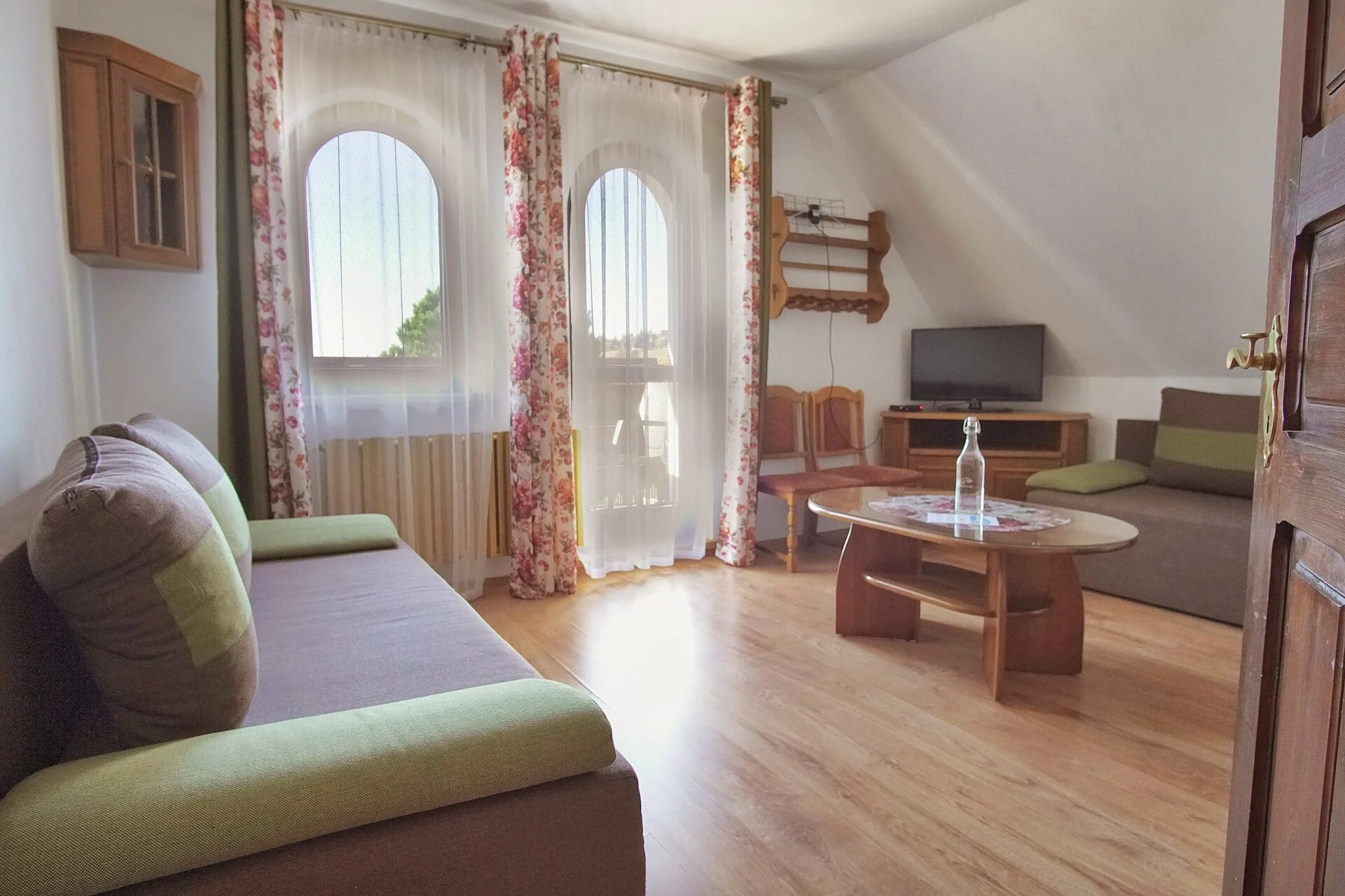The Family Apartment is an ideal space for spending time with loved ones, offering both spaciousness and functionality. It consists of two rooms: a bedroom with a comfortable double bed and a living room where you can relax and enjoy your favorite movies on a flat-screen TV.