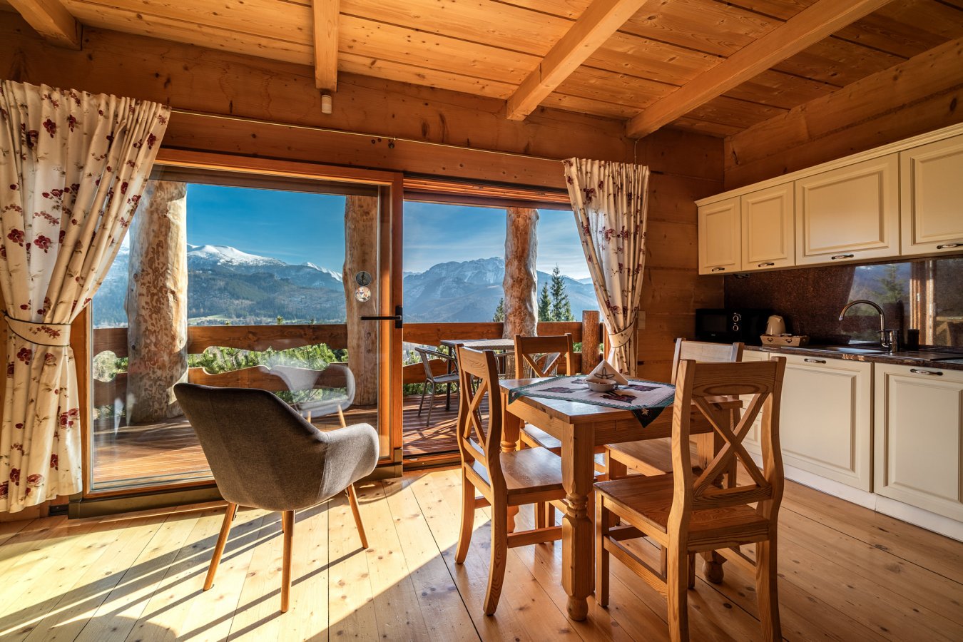 Thanks to their exceptional location, you can admire the full beauty of the mountains without any obstructions from parking lots or neighboring buildings. The surrounding meadow enhances the feeling of harmony with nature, offering a tranquil atmosphere and the ideal conditions for relaxation.