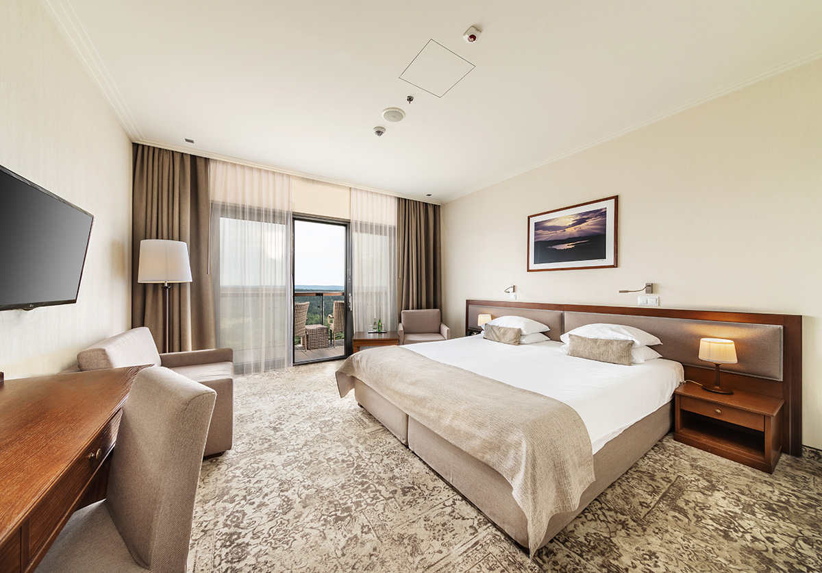 The spacious and comfortable Room with a View at the Hotel combines modern design with subtle references to the traditions of the Podkarpacie region. Fully equipped, it offers a picturesque panorama of the Bieszczady Mountains, enhancing the unique experience of your stay.