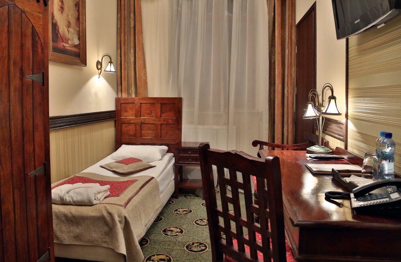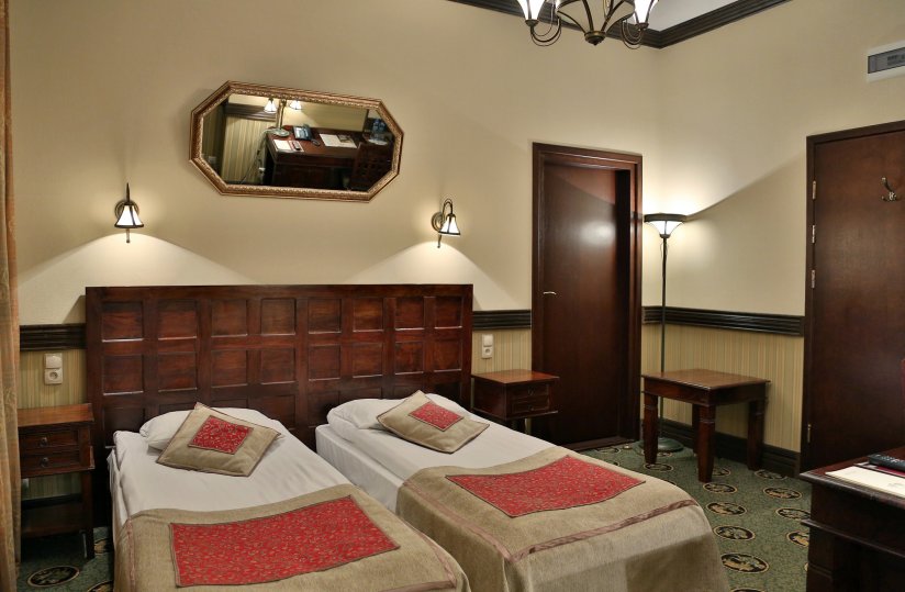 Hotel ZAMEK RYN**** has 8 studio-type rooms. Located in the hunting wing, double rooms create a studio room with a single room (connected by internal doors). Stylish furniture made of rosewood and soft carpets warm the interior. The room offers Wi-Fi and wired Internet. Some single rooms have the possibility of adding an extra bed (this is a typical hotel extra bed, due to the reduction in room size, this solution is recommended for stays with children). The rooms are situated on the outer side of the hotel building – they offer a view towards the north-western direction, with a view from the rooms’ windows over the picturesque town of Ryn.