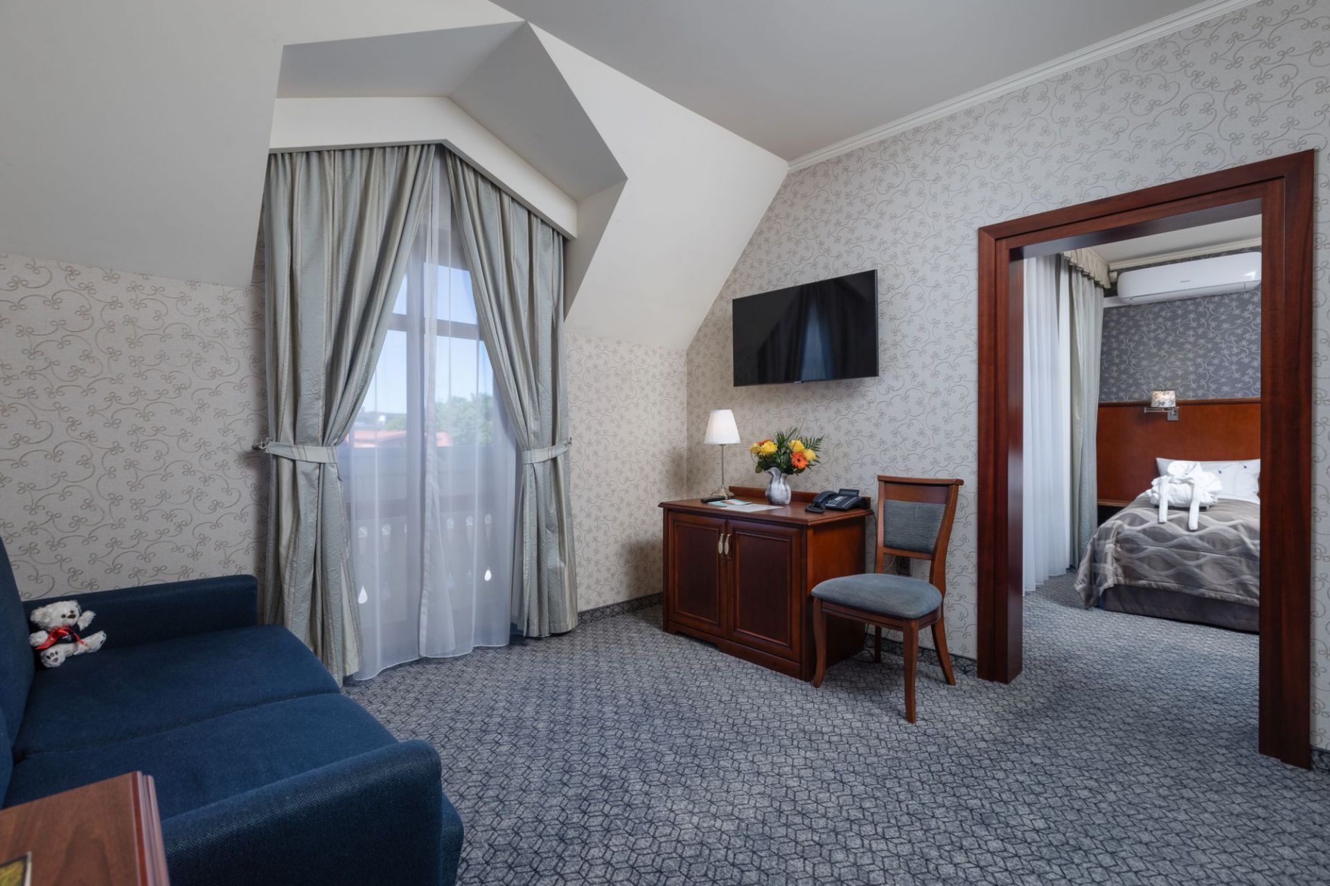 Experience elegance and comfort in our SUITE rooms, featuring a cozy living area with a fold-out Kler sofa and a separate bedroom with a 160 cm bed. These non-smoking rooms are designed for couples seeking a serene retreat.