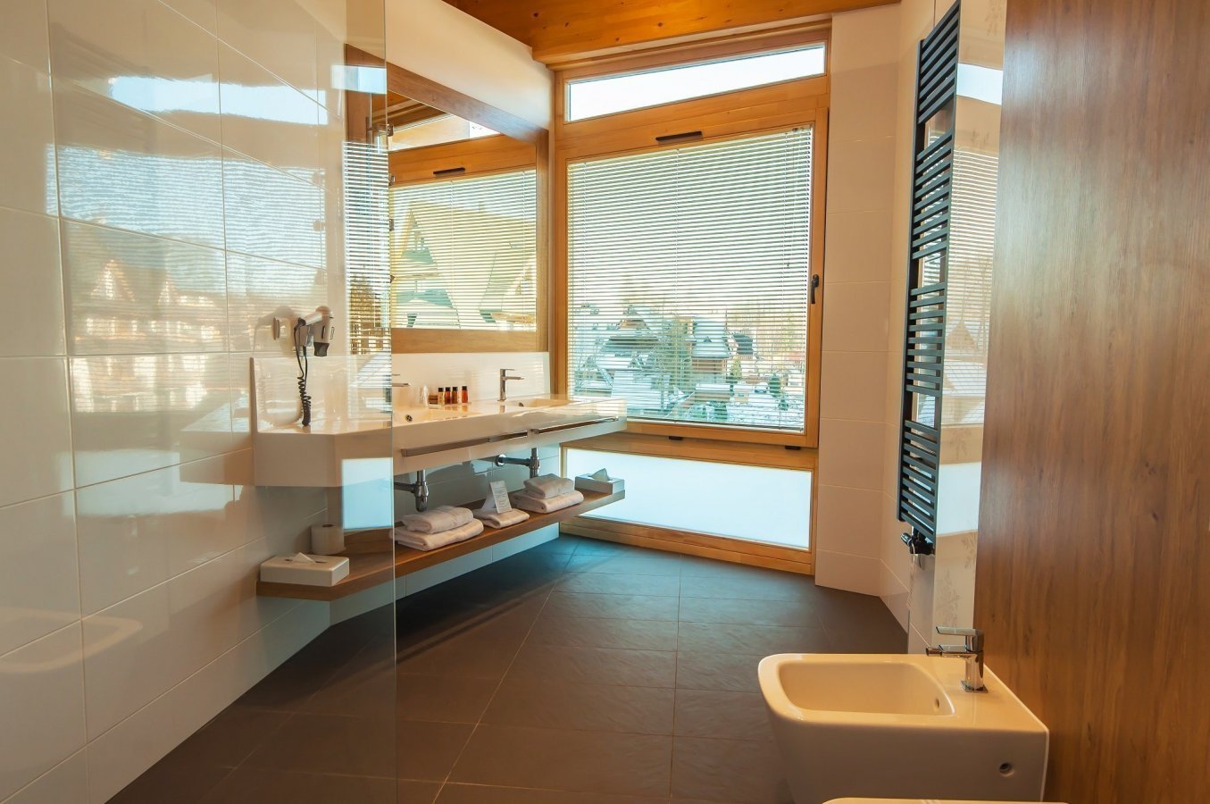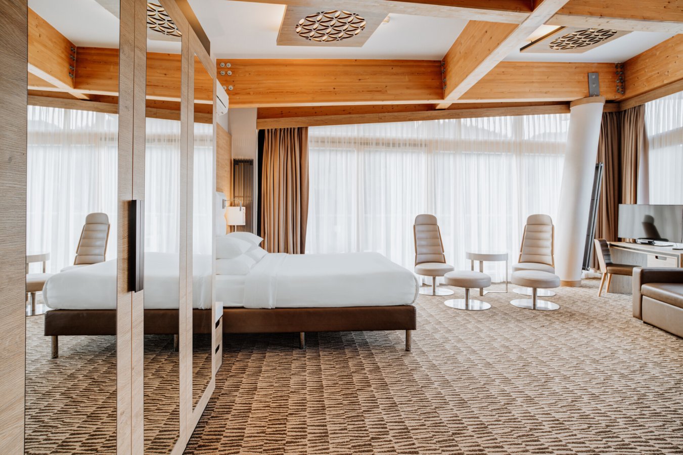 An unquestionable advantage of this unique apartment is the view over the mountains, which you can admire thanks to the huge windows located on two corner walls.