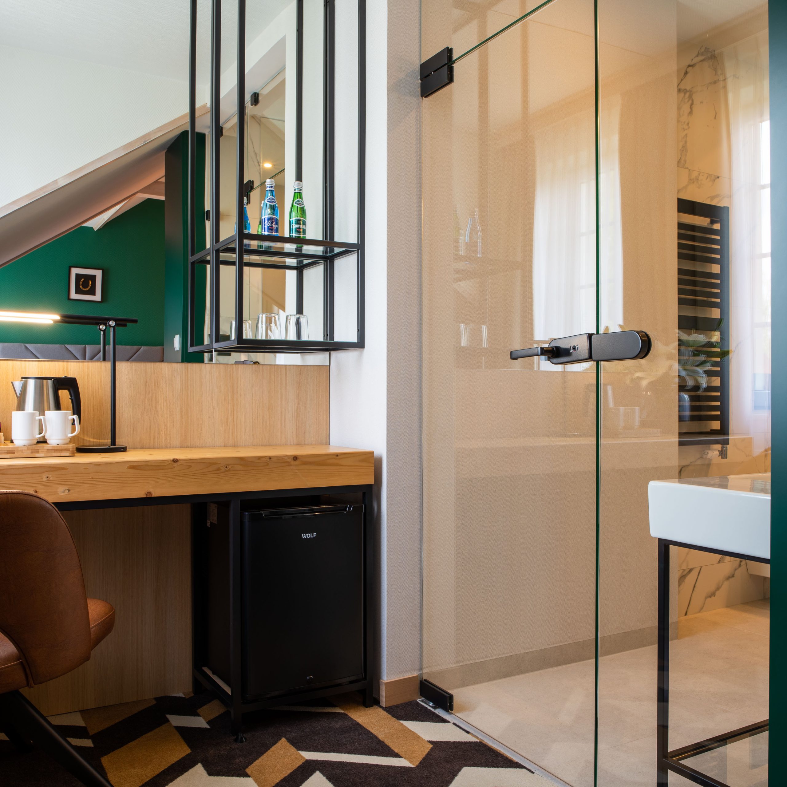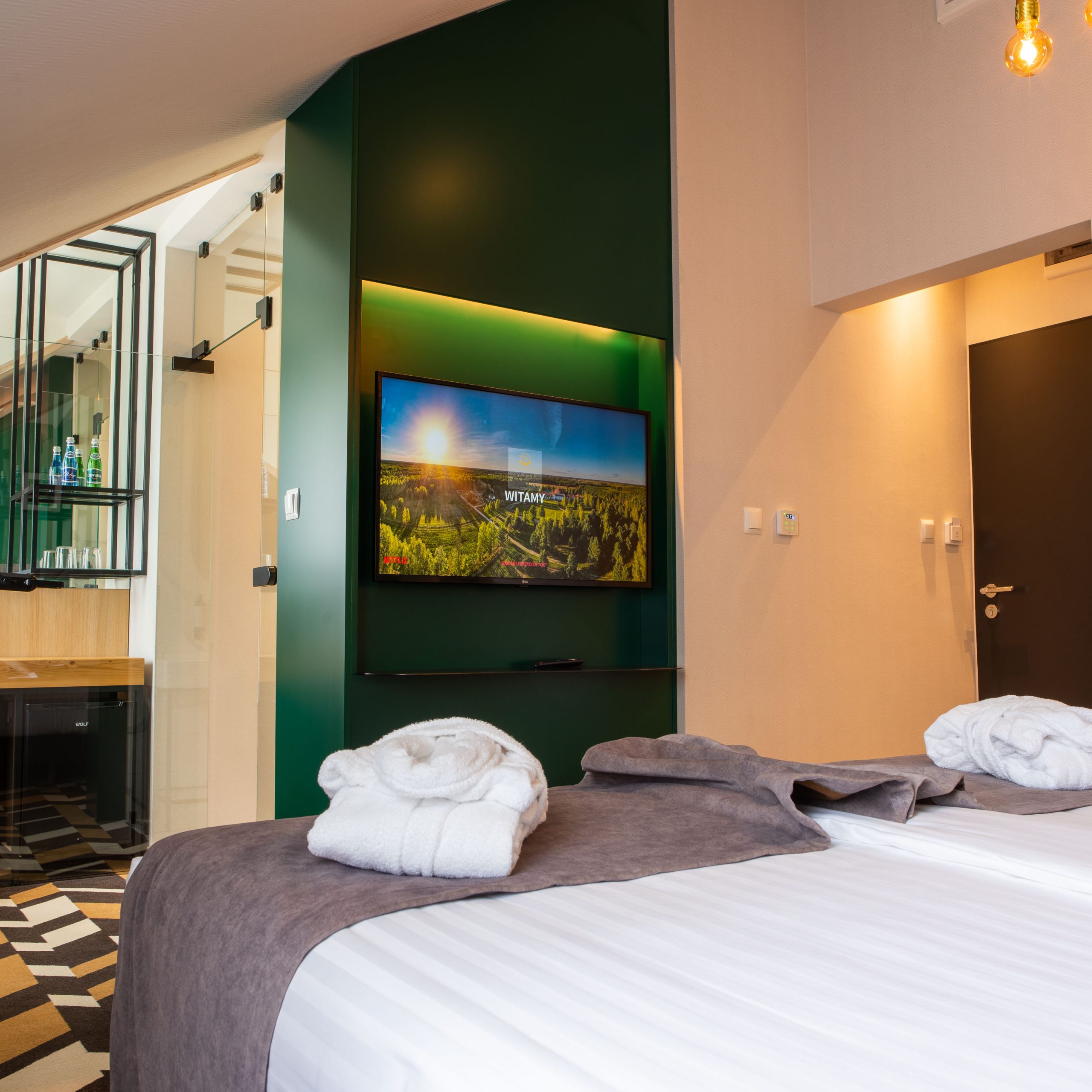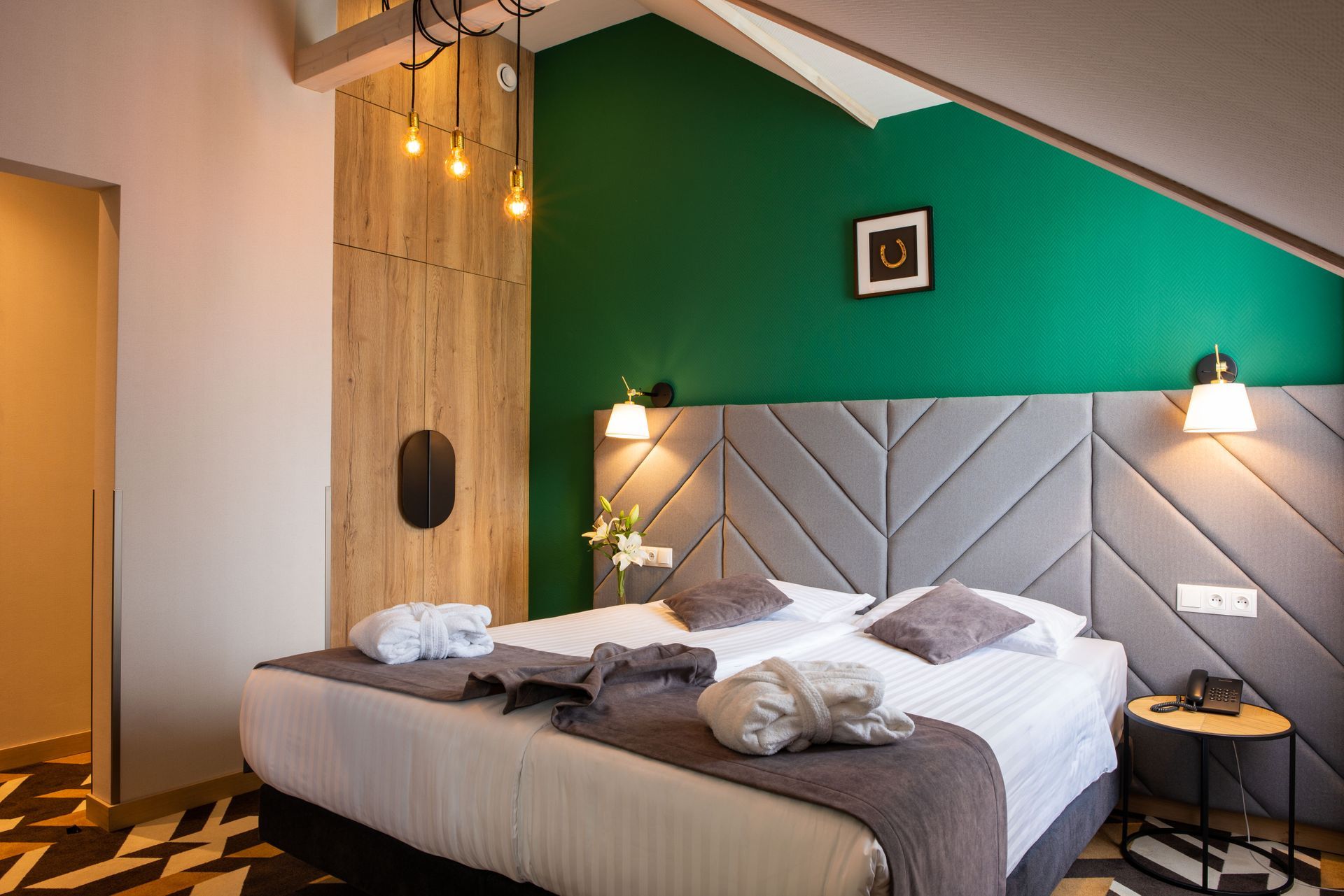 The Superior Room is the perfect choice for two guests, offering an unforgettable experience. Its unique design, featuring a dominant green color palette, creates an atmosphere of relaxation and harmony.