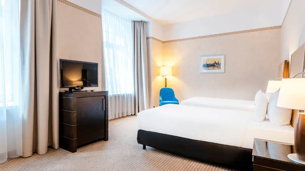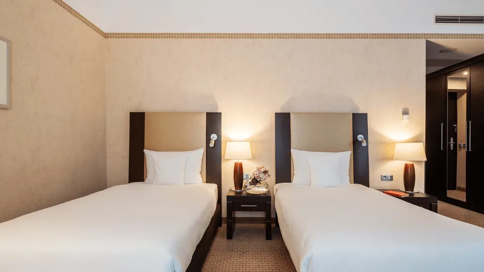 Comfortable room with Twin bed and view of your choice: spectacular perspective of the city center or quieter away from the main street.