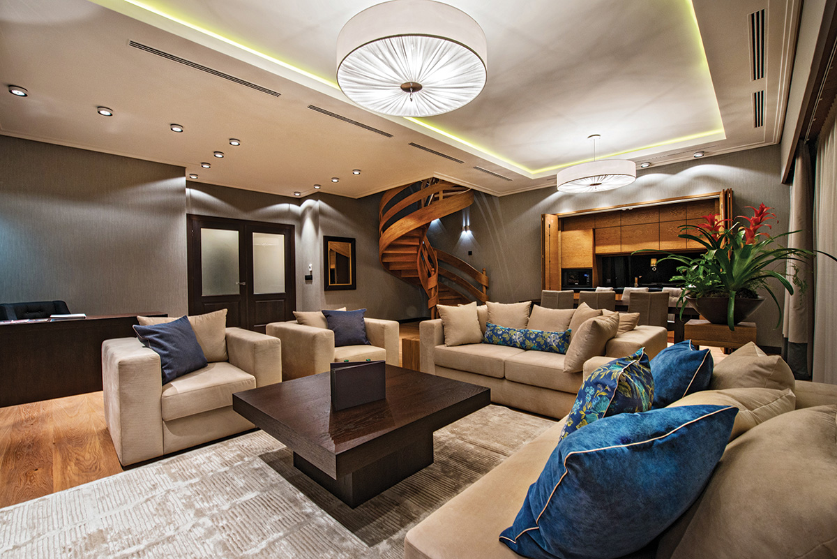 • Living room: Elegant lounge area and a separate guest toilet