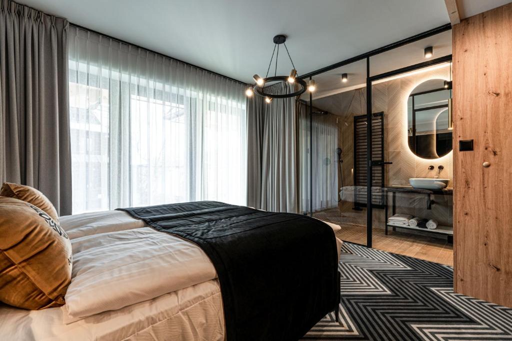 The location allows guests to enjoy breathtaking views of the Tatra Mountains from the windows of the rooms and apartments.