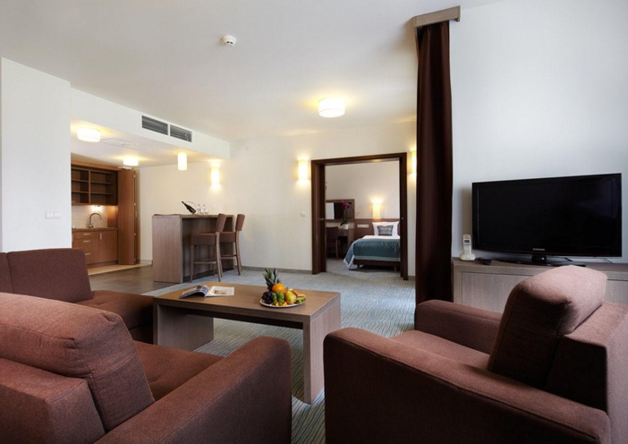Only a five-minute walk through a direct passage to the seaside is enough to get you to the broad and sandy beach, where fresh air will help improve your mood and health. Rooms: Baltic Plaza Hotel has a 4**** standard and 77 apartments: 71 comfort type apartments, 3 comfort plus type apartments and 3 superior apartments. The total capacity is 300 people. Each apartment includes: a spacious balcony or a terrace with a beautiful view, air-conditioning, bathrooms with showers, water, tea, fridge, kettle, cutlery, plates, fast internet and TV.
