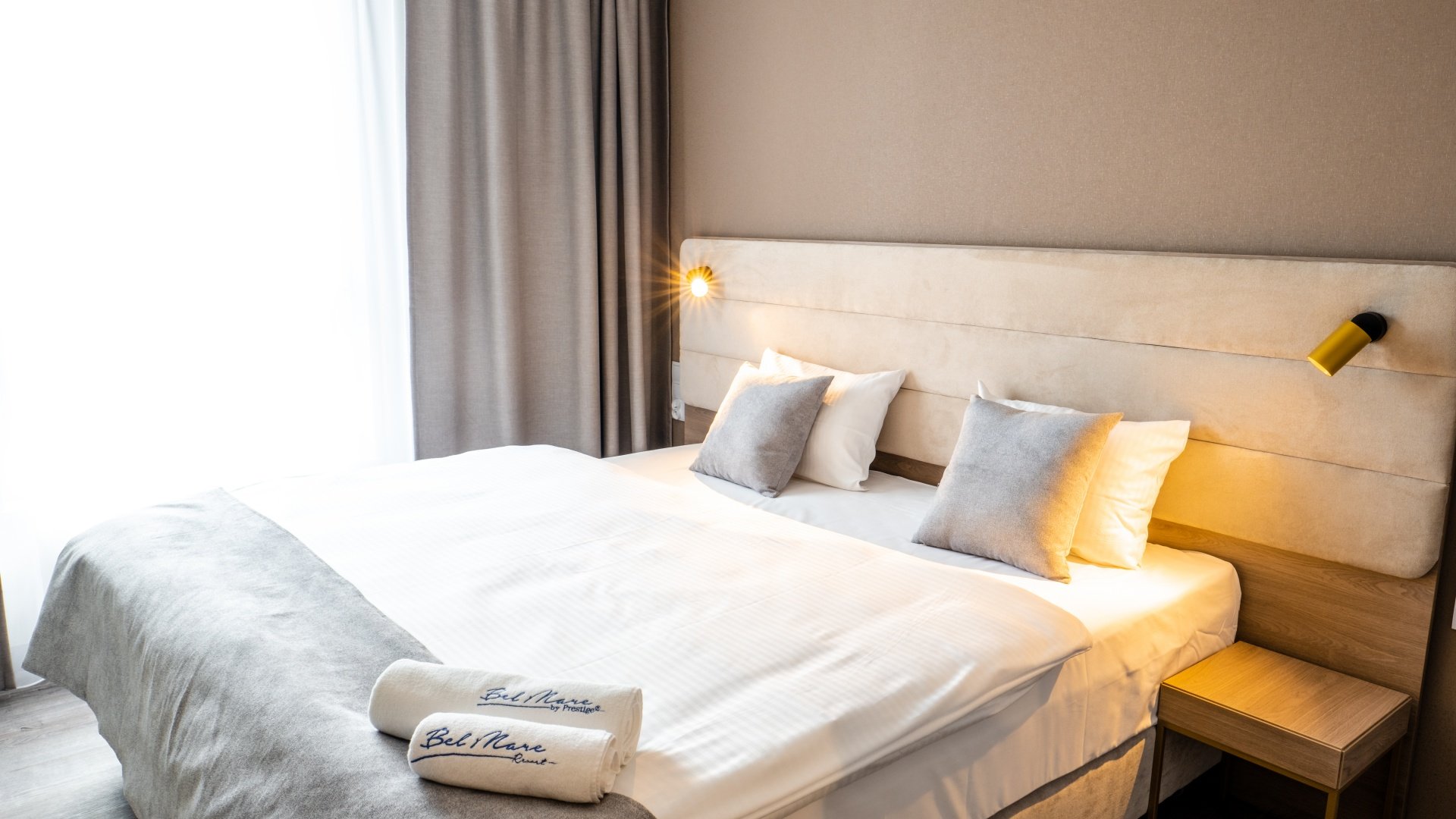 The resort consists of BEL MARE I, BEL MARE II, BEL MARE III (Aqua), AQUA RESORT and Bel Mare V. It features over 700 panoramic Double, Suite, Suite Lux, Suite Premium, 2Apart, and 3Apart, as well as Aqua Double and Aqua Suite, plus fully air-conditioned rooms in AQUA RESORT. The intimate building of the facility provides ideal relaxation at any time of the year.