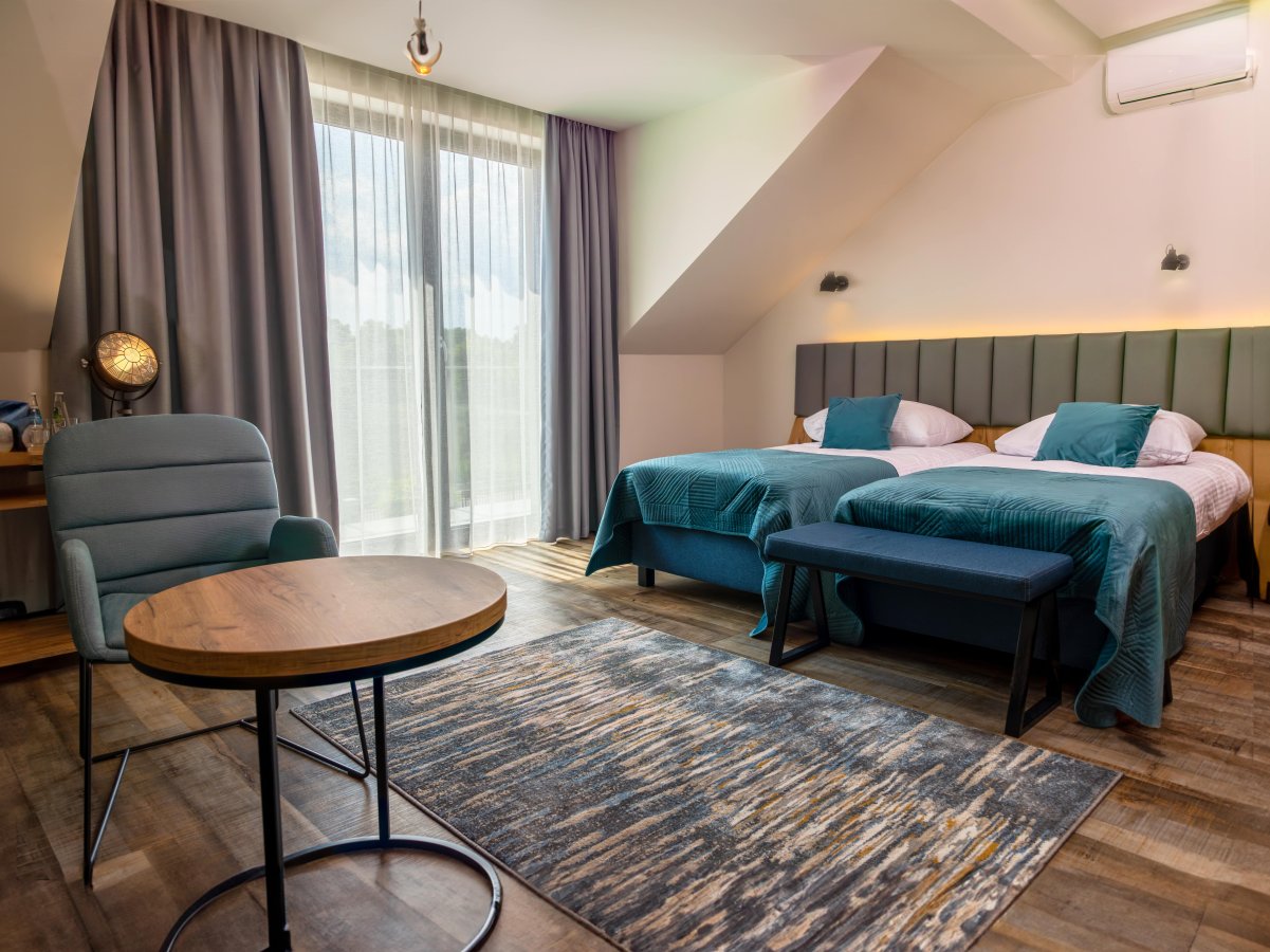 We are a hotel designed with attention to details. Just 35 kilometers from Warsaw, in the buffer zone of Dąbrowa Radziejowska, we have created a cozy, four-star hotel to provide guests with a relaxed atmosphere. For breakfast, we serve freshly squeezed juices and hot pancakes. The proximity of nature, rooms with jacuzzi, garden with hammocks, refined details and rich SPA offer guarantee high comfort – a perfect rest away from the big city noise.