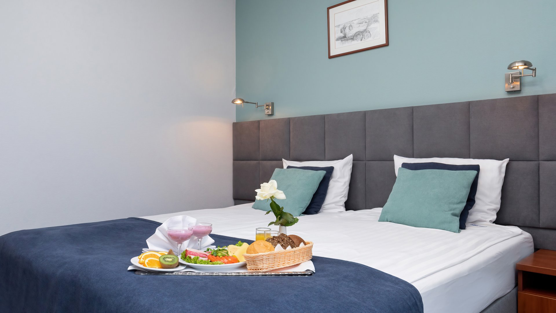 All rooms are equipped with bathroom, hairdryer, ironing set, kettle, refrigerator, telephone, safe, TV set and Internet access. Each room has a balcony.
